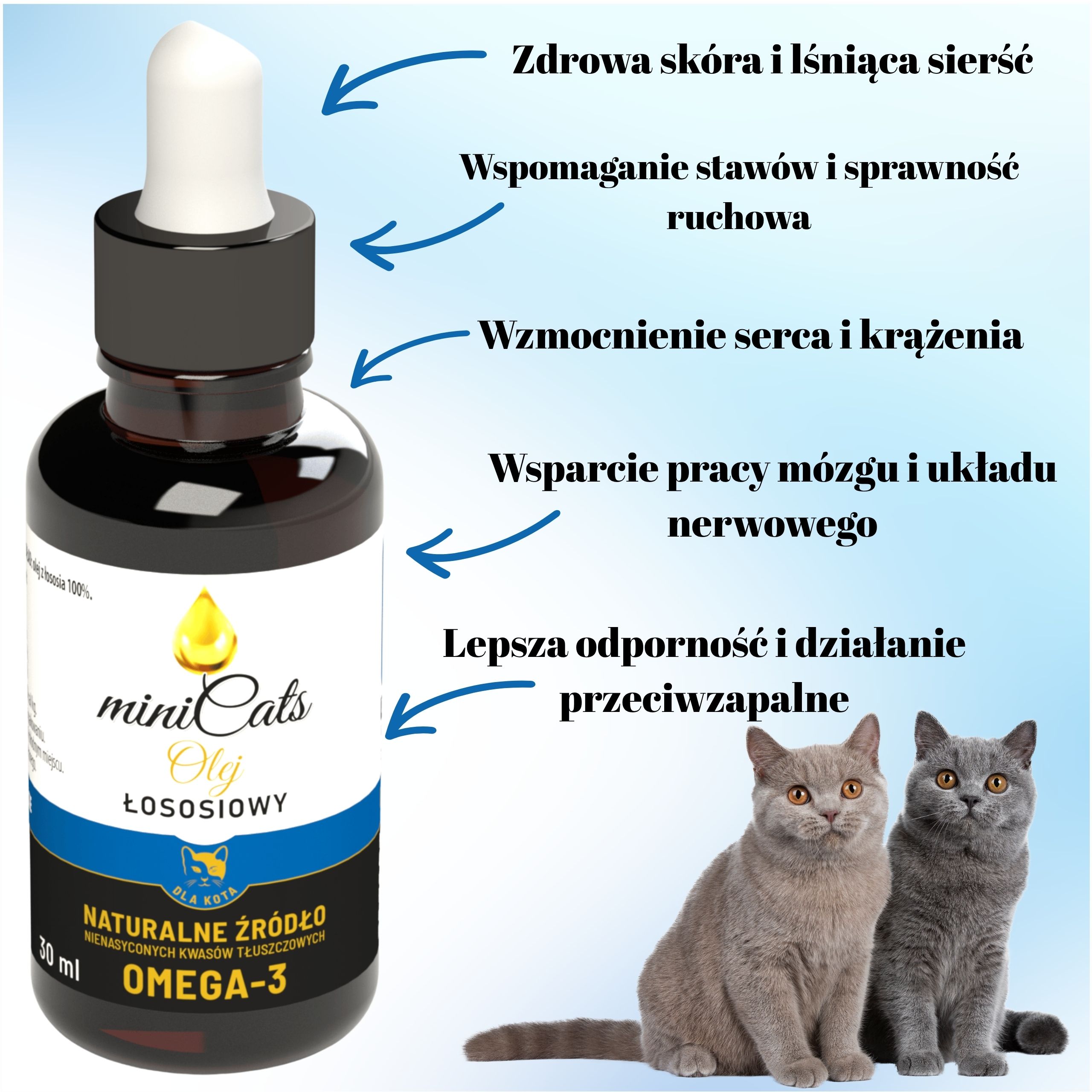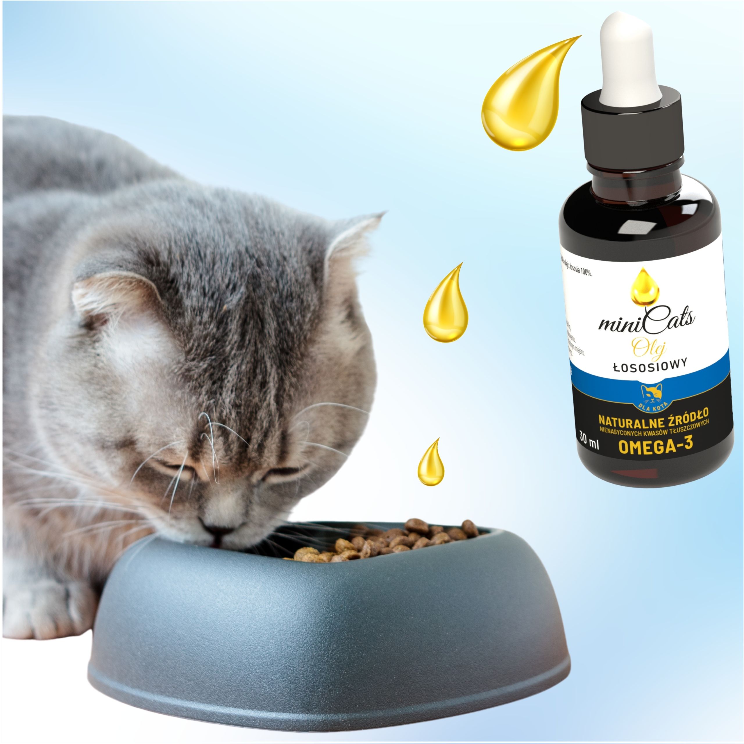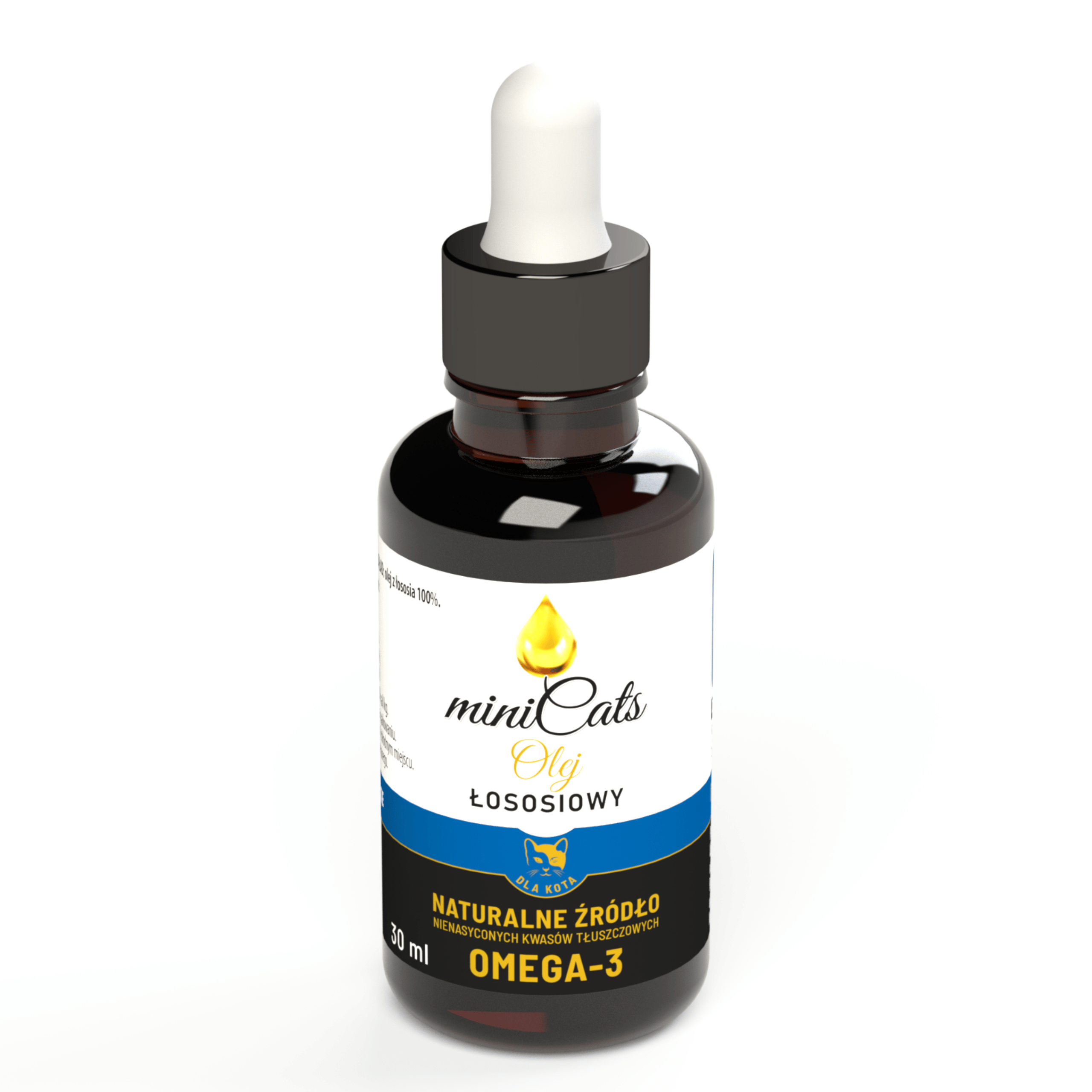 OLEJ ŁOSOSIOWY dla kota 30ml miniCats zimnotłoczony skóra i sierść kotów